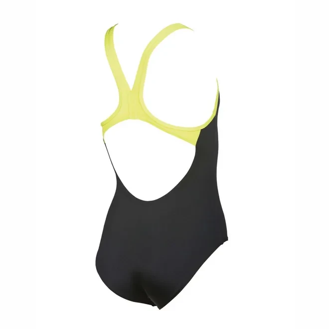 Girls Arena Big Logo Swimsuit in black green.- Ergonomic back.- Durable and quick-drying.- arena MaxLife fabric.- Arena motif in the centre.- Long-lasting.- 100% chlorine resistant UV protection UPF 50+.- 100% Polyester.